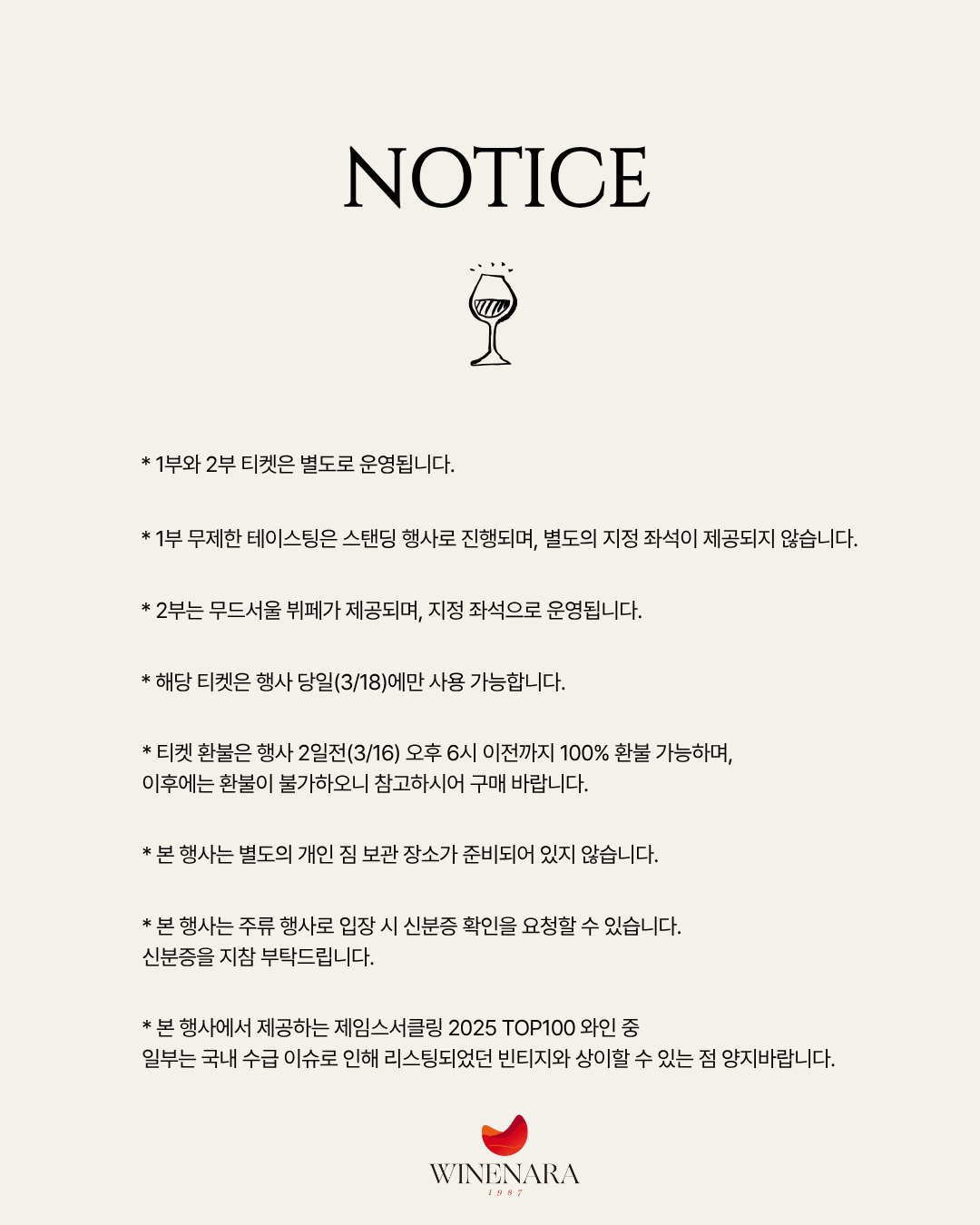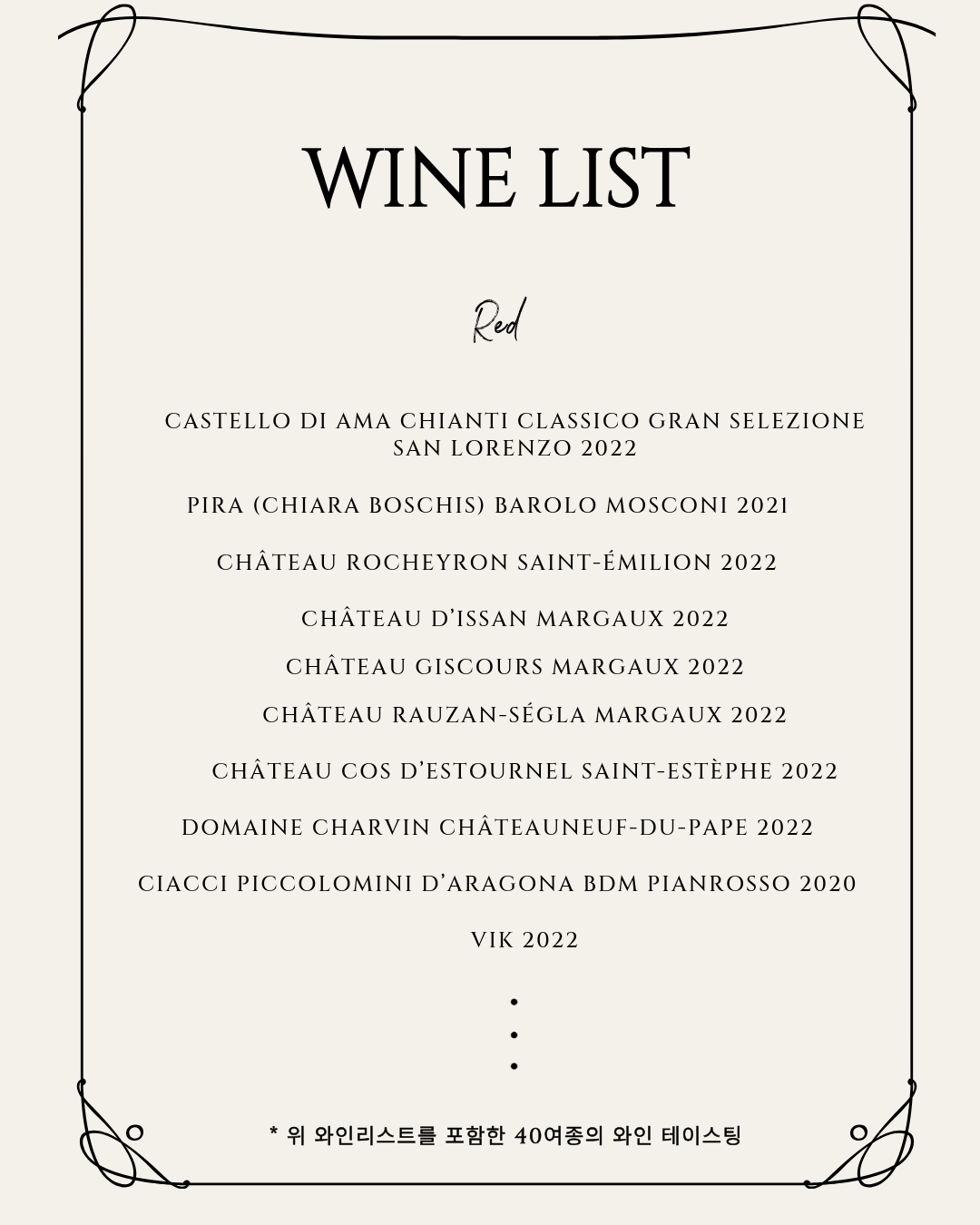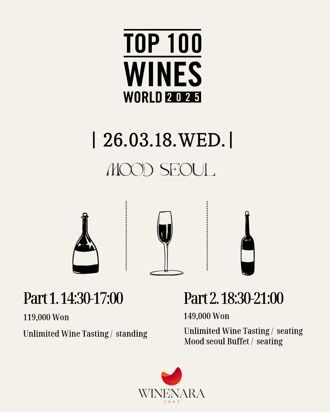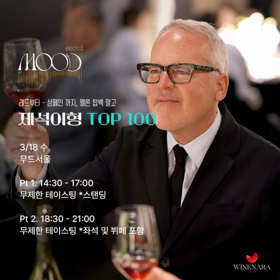 본 행사는 2025년 세계적인 와인평론가 제임스 서클링(James Suckling)이 선정한 TOP 100 와인 중 40여종의 와인을 시음할 수 있는 기회를 마련하고자 기획했습니다. 1위를 기록한 샤또 디쌍(Chateau D'issan) 오너가 직접 1위에 선정된 2022빈티지를 가지고 방한하여 직접 자신의 와인에 대한 양조철학과 브랜드 스토리를 소개할 예정입니다. 해당 행사는 무드서울(MOOD Seoul) 2층에서 1, 2부로 나누어 진행합니다. 자세한 내용은 하단 설명 및 아영FBC 인스타그램(@ayoungfbc)을 통해 확인가능합니다.