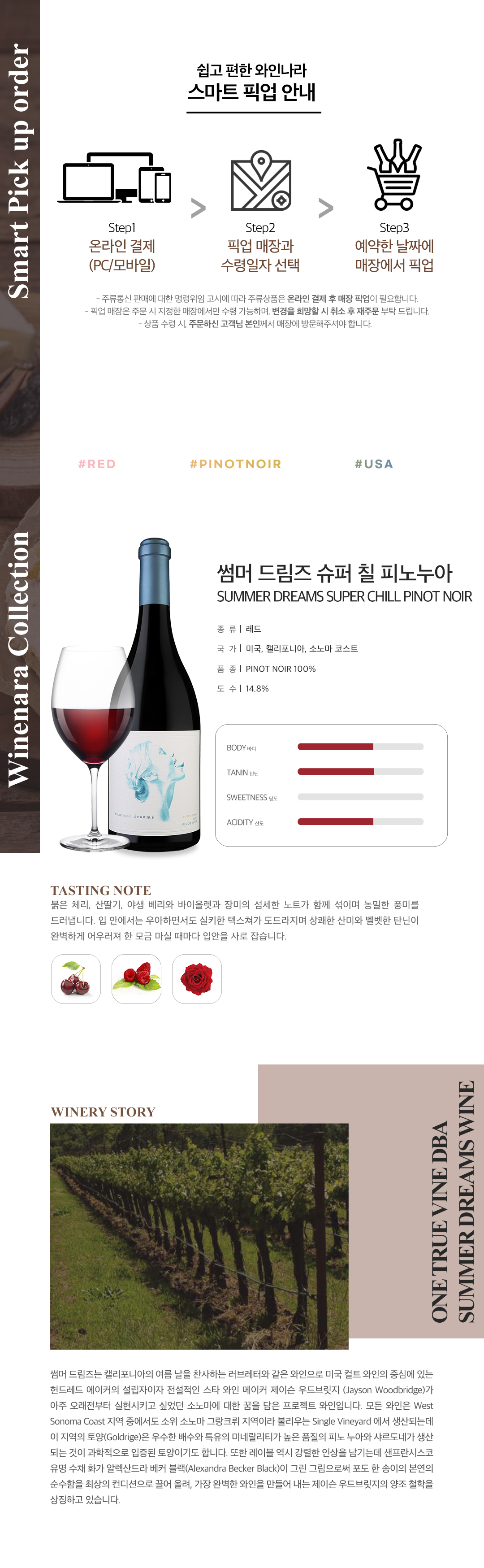 썸머 드림즈 와인 중 매혹적인 소노마 코스트의 피노 누아를 가장 우아하게 표현한 와인.