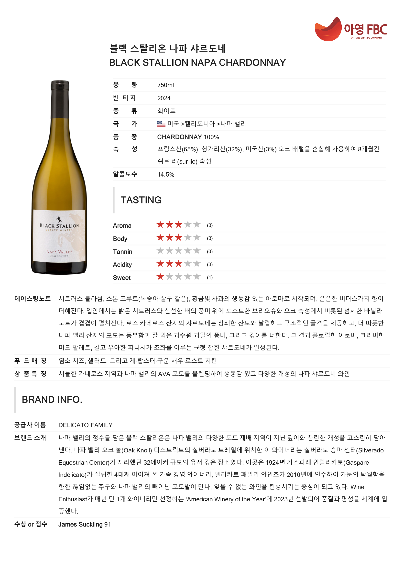 블랙 스탈리온 나파 샤르도네